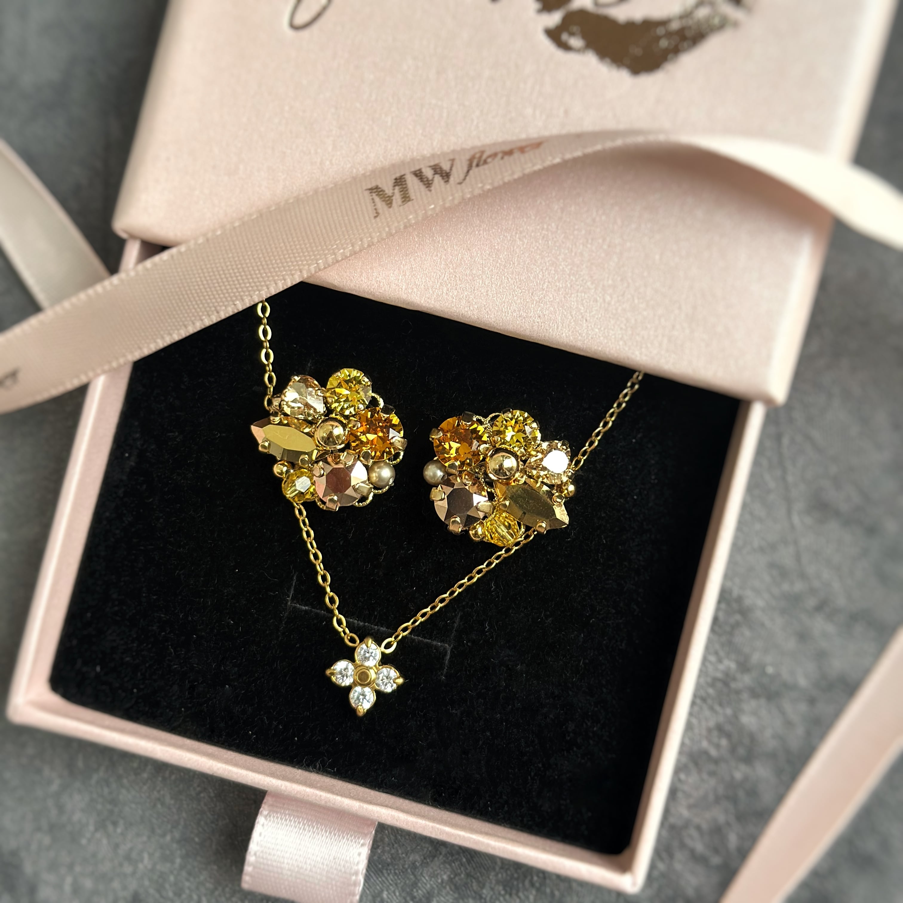 小さいお花のネックレスのセットアイテム。